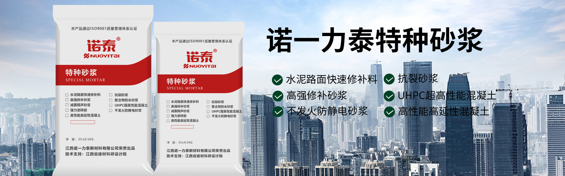 江西諾一力泰新材料有限公司位于江西宜春奉新縣,是專業從事灌漿料、水泥路面修補砂漿、抗裂砂漿、防水砂漿、保溫砂漿、隔聲砂漿、粘結砂漿等砂漿系列產品生產銷售的廠家。